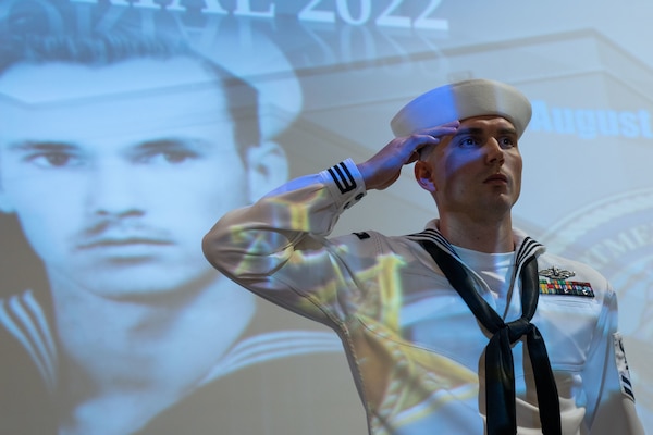 (Aug. 13, 2022) SAN ANTONIO, Texas – "I owe 70 years of my life to a 21-year-old Navy corpsman who died days short of his 22nd birthday" hung in the air during a ceremony honoring the 70th anniversary of Hospitalman John Edward "Jackie" Kilmer's heroic actions on a mountain top in Korea.