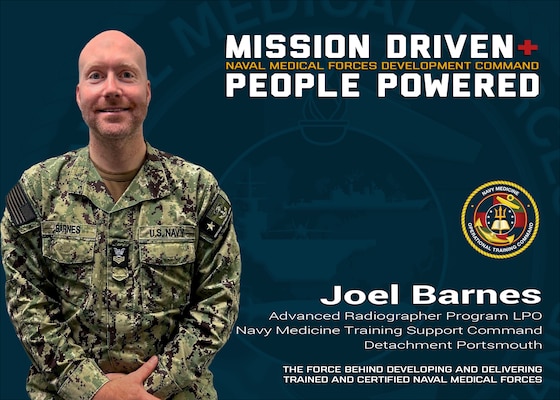 JOINT BASE SAN ANTONIO-FORT SAM HOUSTON, Texas – The Naval Medical Forces Development Command (NMFDC) is mission driven and people powered. Today, we highlight Hospital Corpsman 1st Class Joel Barnes, the Lead Petty Officer for the Navy Medicine Training Support Command’s (NMTSC) Advanced Radiographer Program, Detachment Portsmouth.