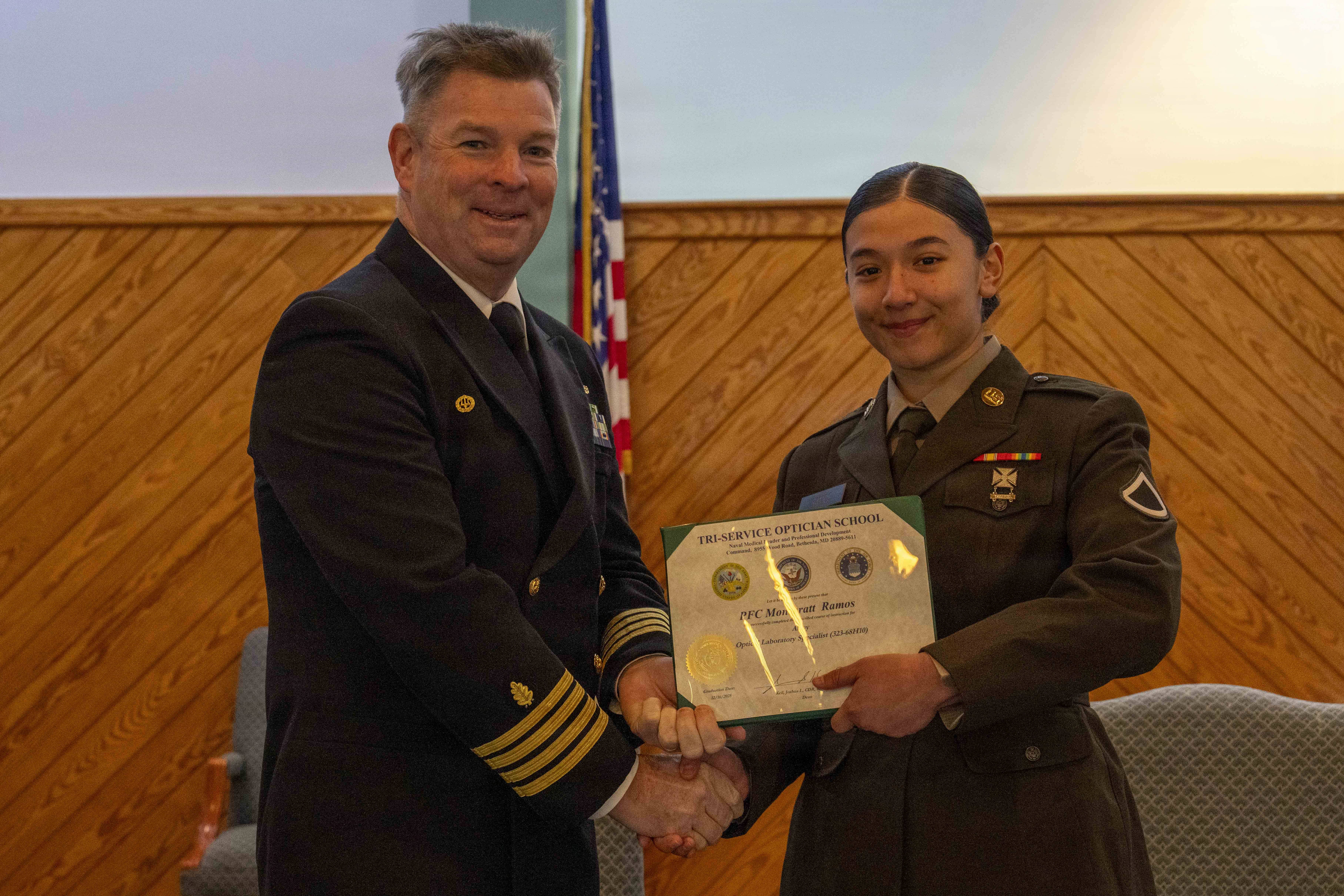 “This optician school became a joint enterprise in 1996. You guys are the 98th Army/Navy class to graduate from TOPS,” said Cmdr, Joshua Keil, Dean, TOPS. “I’ve been truly impressed by all 7 of you. You showed up each and every day, ready and willing to learn.”