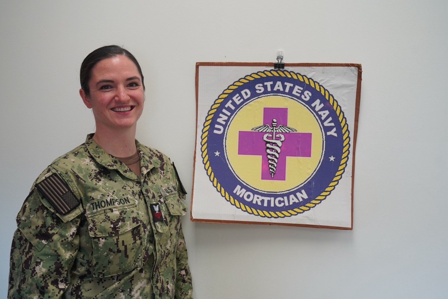 250501-N-FT324-8093. Hospital Corpsman First Class (HM1) Julianne Thompson, stationed at Naval Hospital Rota, gives a tour of the Navy mortuary facilities in Rota, Spain, highlighting the critical responsibilities and operational support her role provides in ensuring dignified and respectful care. (U.S. Navy Photo by Lt. Cmdr. Alicia Sacks)