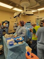 Hospital Corpsman 2nd Class Kandice Cullison, a surgical technologist assigned to Naval Medical Readiness and Training Command (NMRTC) Sigonella, participates in a Code Purple Drill in the naval hospital’s main operating room. The exercise brings together the operating room, multi-service ward, emergency room, and anesthesia staff to strengthen teamwork and sharpen the command’s emergency response capabilities.