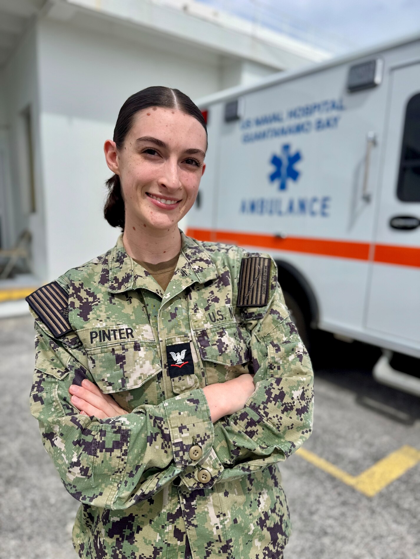 250918-N-LY941-1001 GUANTANAMO BAY, Cuba (Sept. 18, 2025) - Hospital Corpsman 3rd Class Maya Pinter, a native of White Lake, Michigan, was recently named Motivator of the Month while serving aboard U.S. Navy Medicine Readiness and Training Command (USNMRTC) Guantanamo Bay, Cuba, Sept. 29, 2025. Pinter is a Certified Emergency Medical Technician. (U.S. Navy Photo by Emily McCamy)