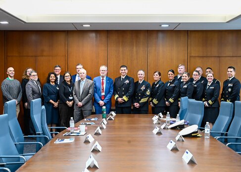 251013-N-IX644-1002 (Oct. 13, 2025) PHILADELPHIA, Pa. Rear Adm. Rick Freedman, center, Deputy Surgeon General of the Navy, a native of Philadelphia, poses for a photo with Thomas Jefferson University leadership and Navy Medicine officers and hospital corpsmen during a school visit that focused on collaboration in medicine and opportunities for Navy Medicine recruiting as part of the 250th birthday of the Navy and Marine Corps in Philadelphia, Oct. 13. For 250 years, Navy Medicine — represented by more than 44,000 highly-trained military and civilian healthcare professionals — has delivered quality healthcare and enduring expeditionary medical support to the warfighter on, below, and above the sea, and ashore. (U.S. Navy photo by Mass Communication Specialist 2nd Class Sasha Ambrose)