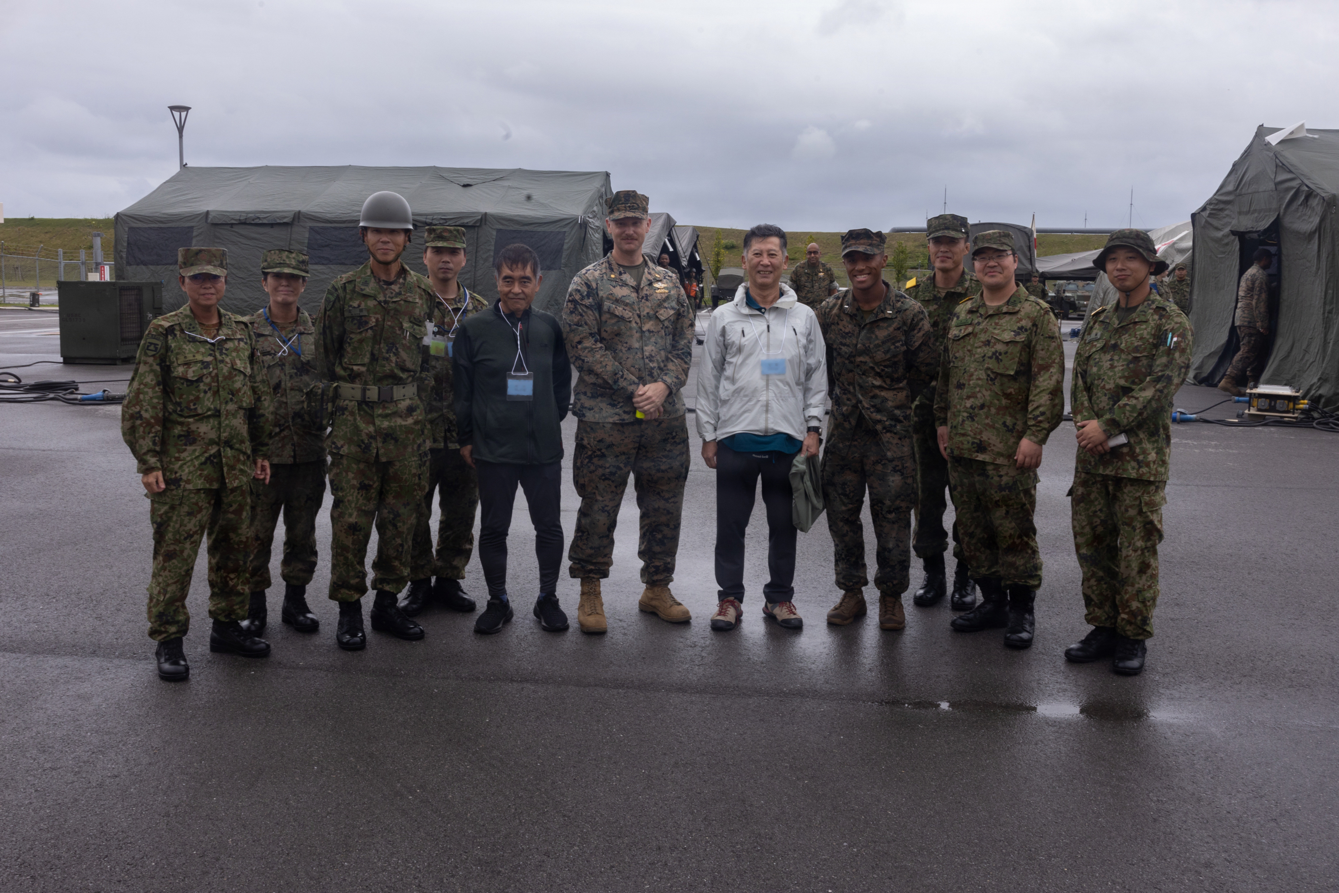 U.S. Marines, Sailors, Japanese Ground Self-Defense Force members, and civilian medical personnel pose for a photo during exercise 07JX on Ishigaki, Okinawa, Japan, Oct 25, 2025. 07JX is a bilateral exercise that aims to enhance bilateral Japan-U.S. capabilities for humanitarian assistance and disaster relief operations in the Southwest islands. (U.S. Marine Corps photo by Lance Cpl. Marcus Henson)