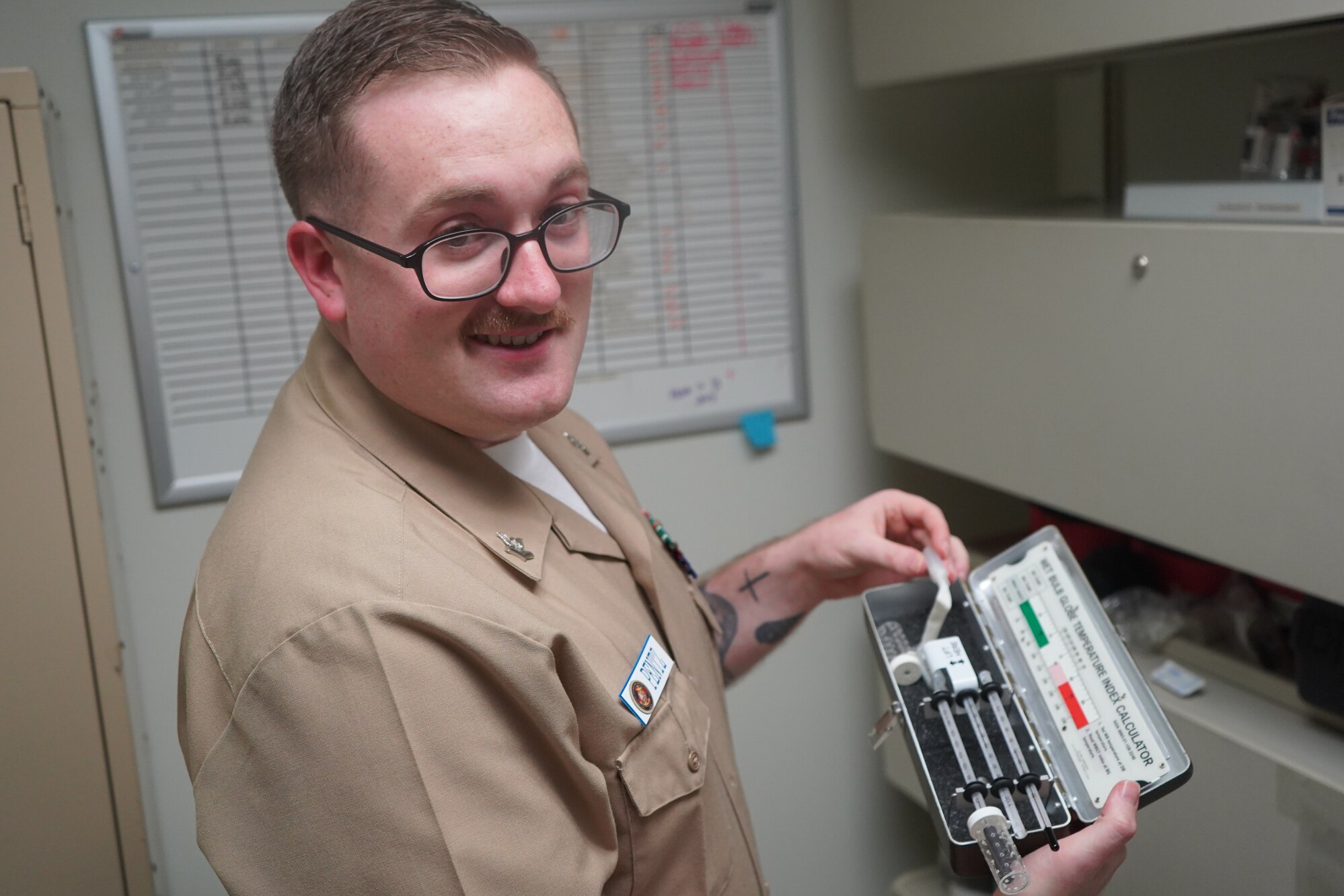 260104-N-FT324-8160. ROTA, Spain (January 4, 20226) — Hospital Corpsman 2nd Class Logan T. Pentz, a Preventive Medicine Technician assigned to Naval Medical Readiness and Training Command Rota, prepares sampling equipment while conducting routine public health monitoring. Pentz supports Navy Medicine’s mission by identifying potential health risks, ensuring environmental safety, and protecting the health and readiness of Sailors and operational forces. (U.S. Navy Released By Lt. Cmdr. Alicia Sacks)