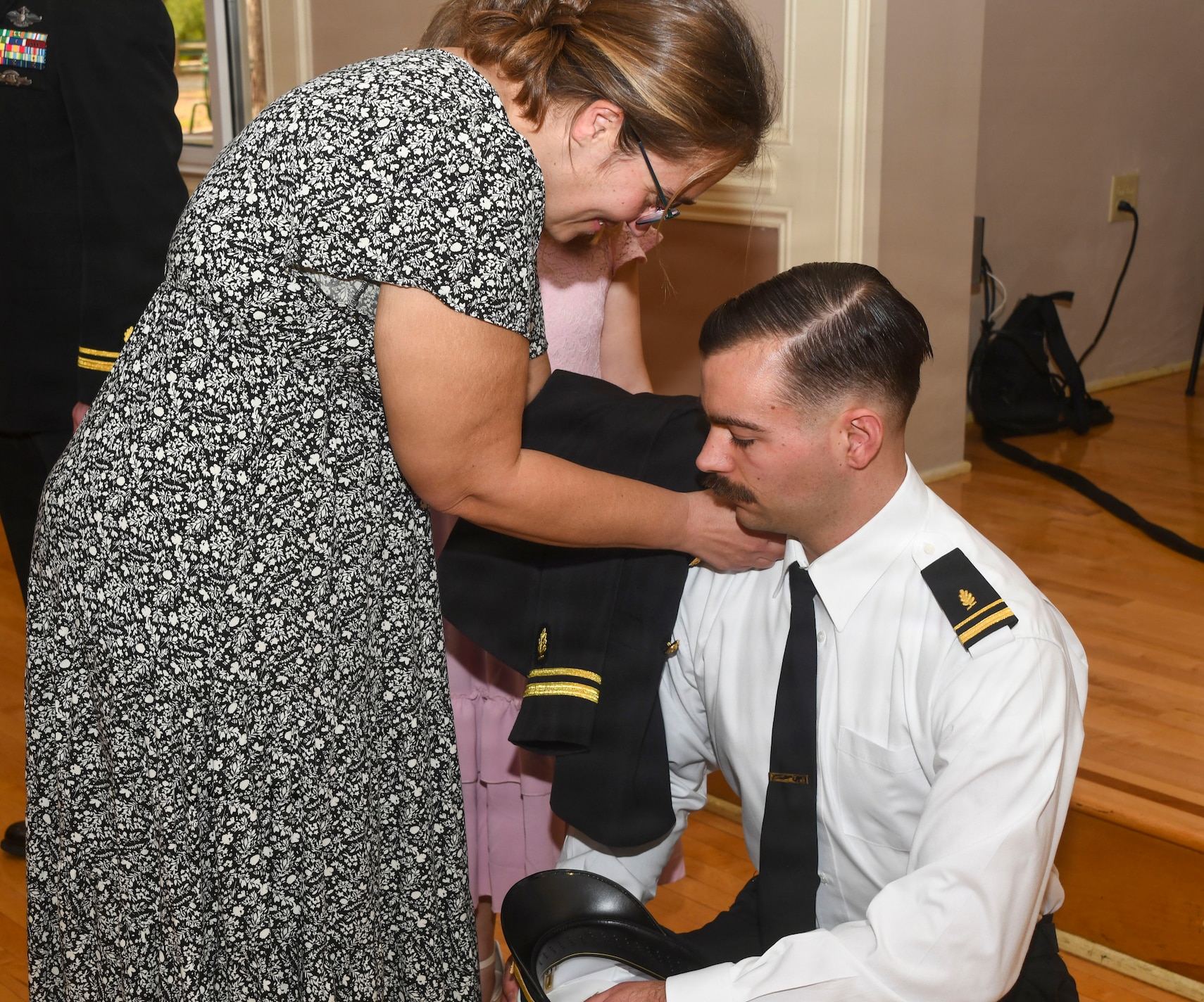 260306-N-FB730-1050 CAMP LEJEUNE. (March 6, 2026) Lt. j.g. Terry Hancock has his officer shoulder boards placed by his family during the Interservice Physicians Assistants Program (IPAP) graduation at Marston Pavilion on March 6, 2026. Naval Medical Center Camp Lejeune serves as a Phase II site for Navy Medicine’s Interservice Physician Assistant Program. The program has graduated and commissioned more than 35 Navy officers since the program’s establishment in 2021. (U.S. Navy photo by Mass Communications Specialist second class Justin Woods)